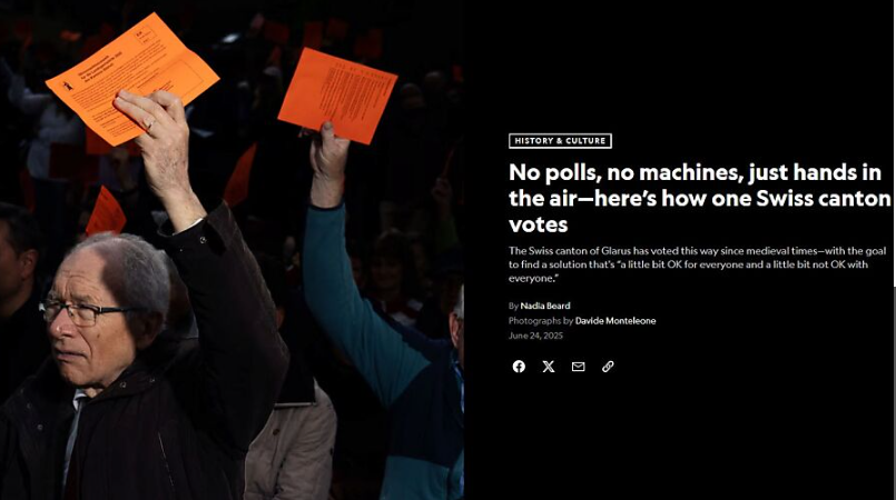 Glarus, 30. Juni 2025 - Der Kanton Glarus erlangt internationale Aufmerksamkeit: Das für seine spektakulären Fotografien bekannte Magazin National Geographic mit Millionen Lesern auf der ganzen Welt würdigt die Glarner Landsgemeinde in einer aktuellen Reportage.