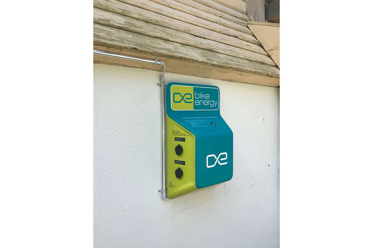 E-Bike Ladestation von bikeEnergy neben dem Berggasthaus Obbort.