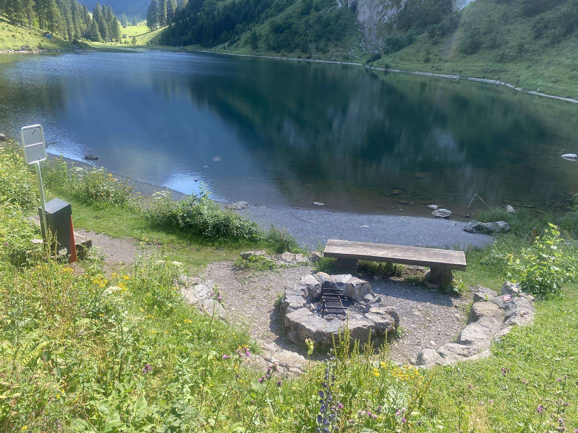 Am wunderschönen Talalpsee gibt es gleich zwei Schweizer-Familienfeuerstellen.