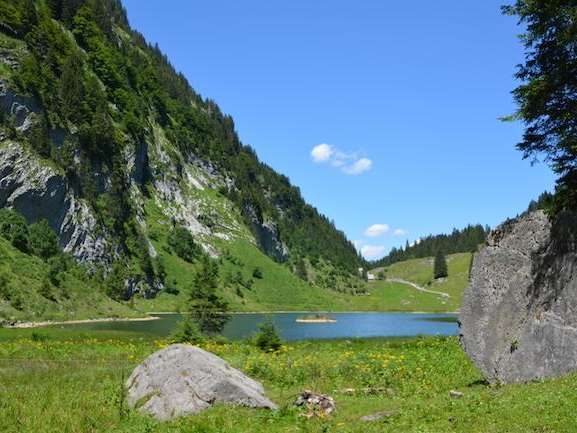 Eine gemütliche Seeumrundung ist jedesmal etwas Besonderes. Familien machen dabei vielleicht den Abstecher zu den "Drachenhöhlen". Während der Sommersaison kann man im urigen Bergrestaurant Talalp bei Ursi Kamm einkehren.