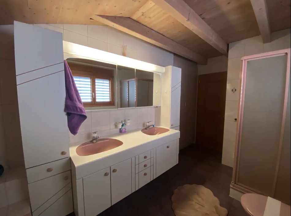 Das Haus hat 6 Schlafzimmer + Wohnzimmer. Es hat 2 Badezimmer mit Dusche, Lavabo, WC und noch ein kleines Gäste WC.