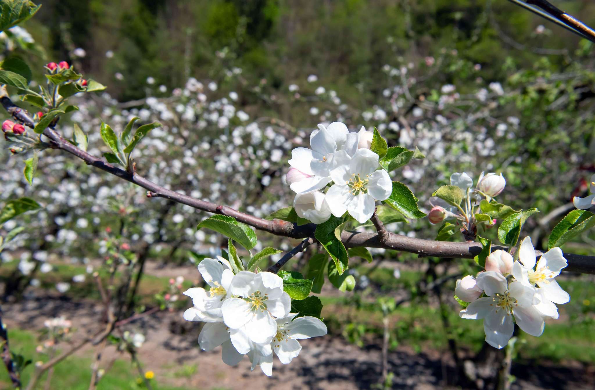 Die Obstbäume stehen direkt neben dem Hofladen – im Frühling lässt sich die Blütenpracht wunderbar bestaunen. Die Familie Heinzelmann produziert unter anderem im Glarnerland feines Tafelobst und bietet weitere landwirtschaftliche Produkte an.