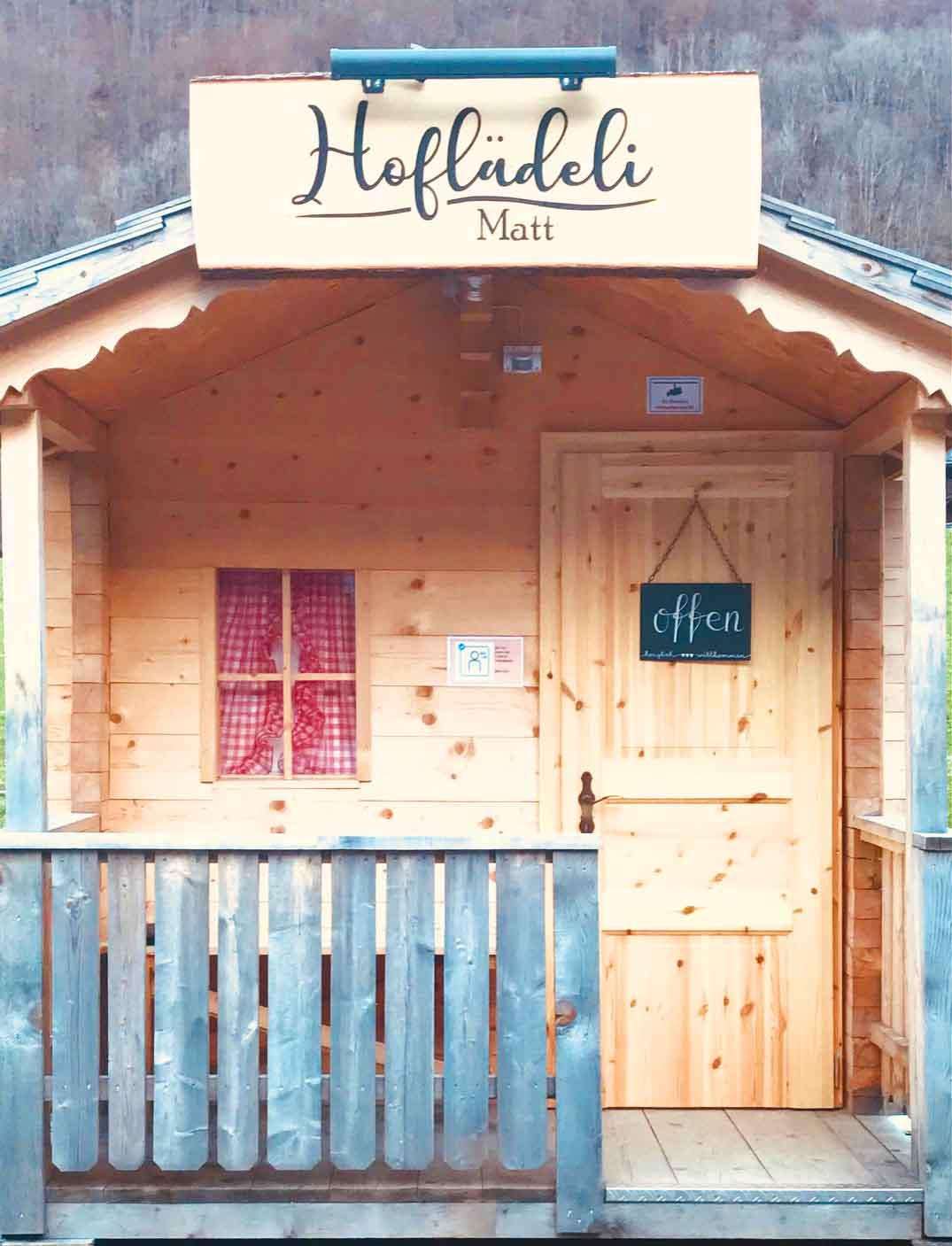 Im liebevoll gezimmerten Hüsli bei der Talstation der Luftseilbahn Matt-Weissenberge finden sich die feinen Alp- und Hofprodukte von Familie Franz Yvonne Marti-Birchler.