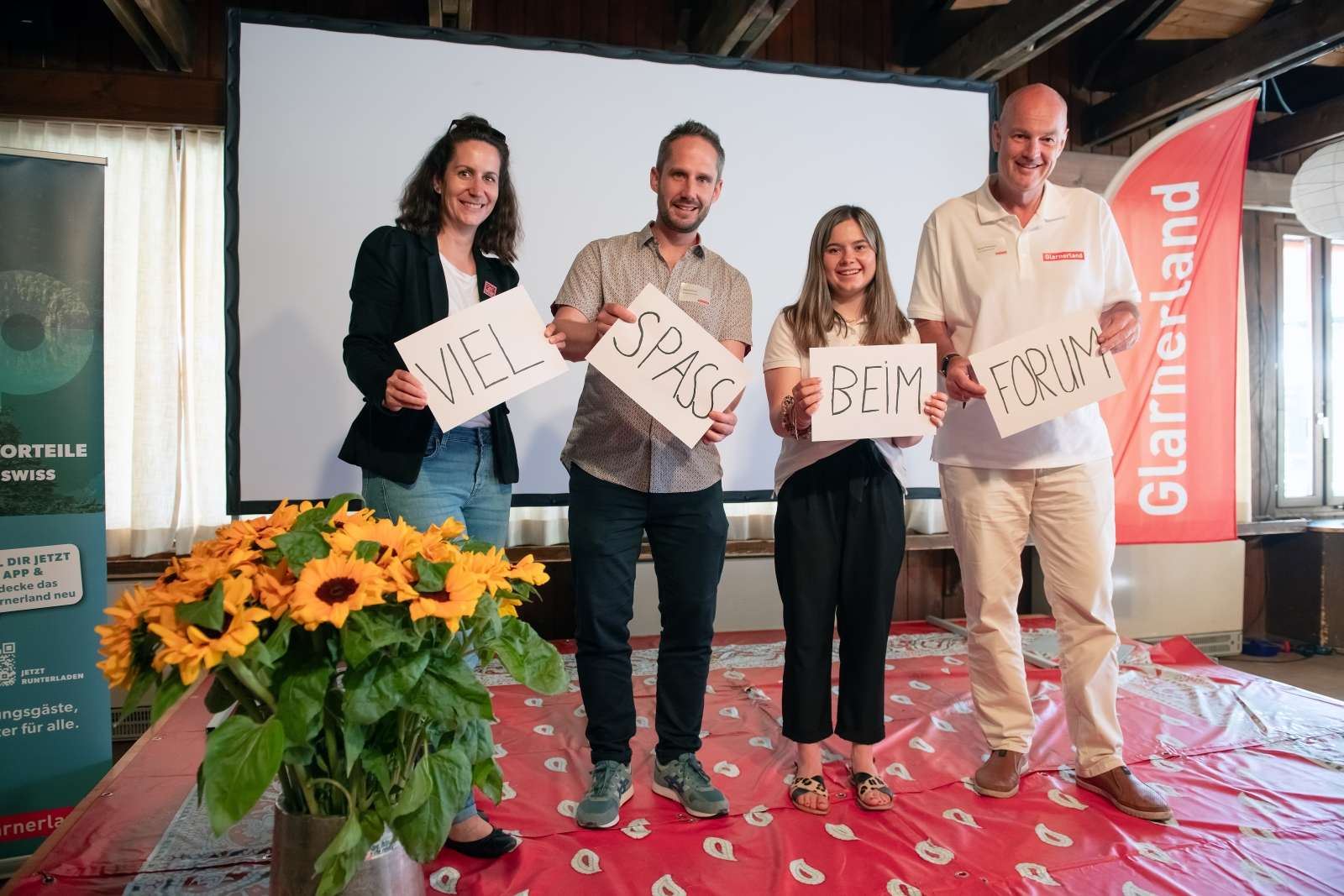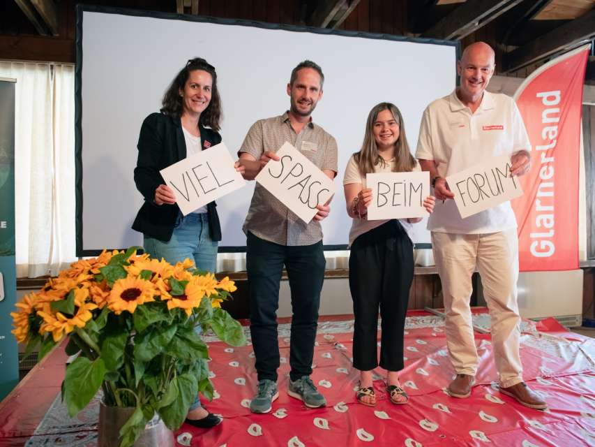 VISIT Glarnerland_Forum_2025 (6): v.l.n.r. Daniela Heussi, ESAF Co-Geschäftsleiterin, Michael Kumli, Geschäftsführer Baselland Tourismus, Noemi Luchsinger von VISIT Glarnerland, Manuel Rickenbach Verwaltungsratspräsident VISIT Glarnerland